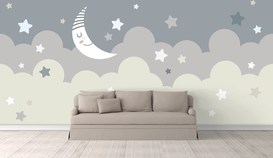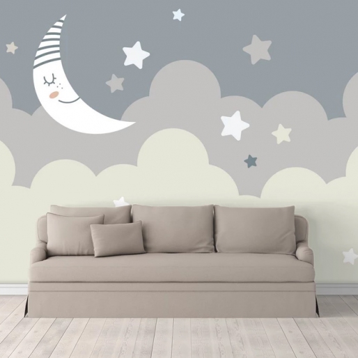 Fototapet Luna albă pe cerul albastru cu stele
