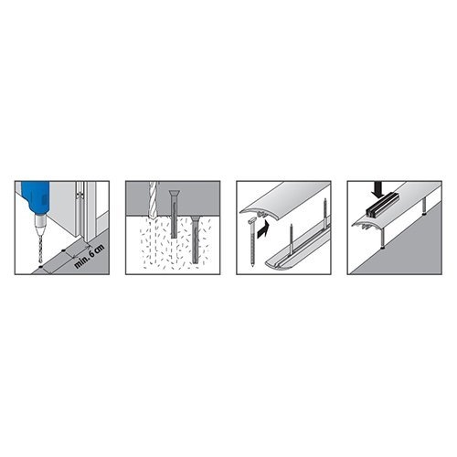 Монтаж проходных профилей прост и может быть выполнен при наличии минимума знаний. Подоконник продается с дюбелями для крепления. Проходной профиль имеет скрытую систему крепления и обеспечивает высокую устойчивость во времени.